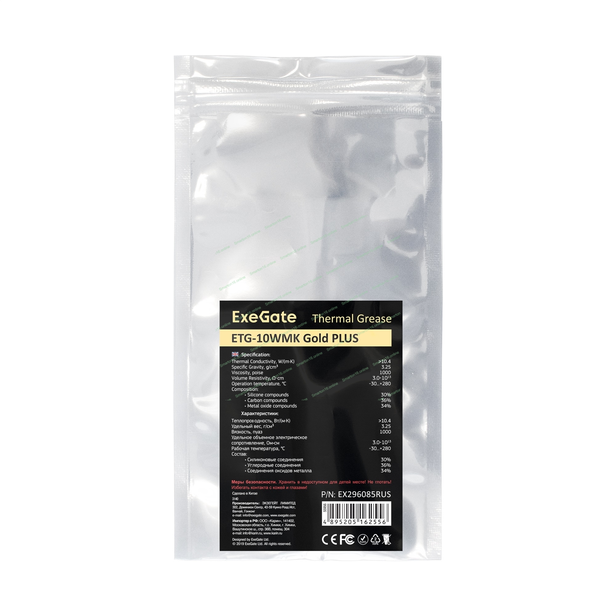 Термопаста ExeGate ETG-10WMK Gold PLUS (10,4 Вт/(м•К), 2г, шприц с лопаткой)