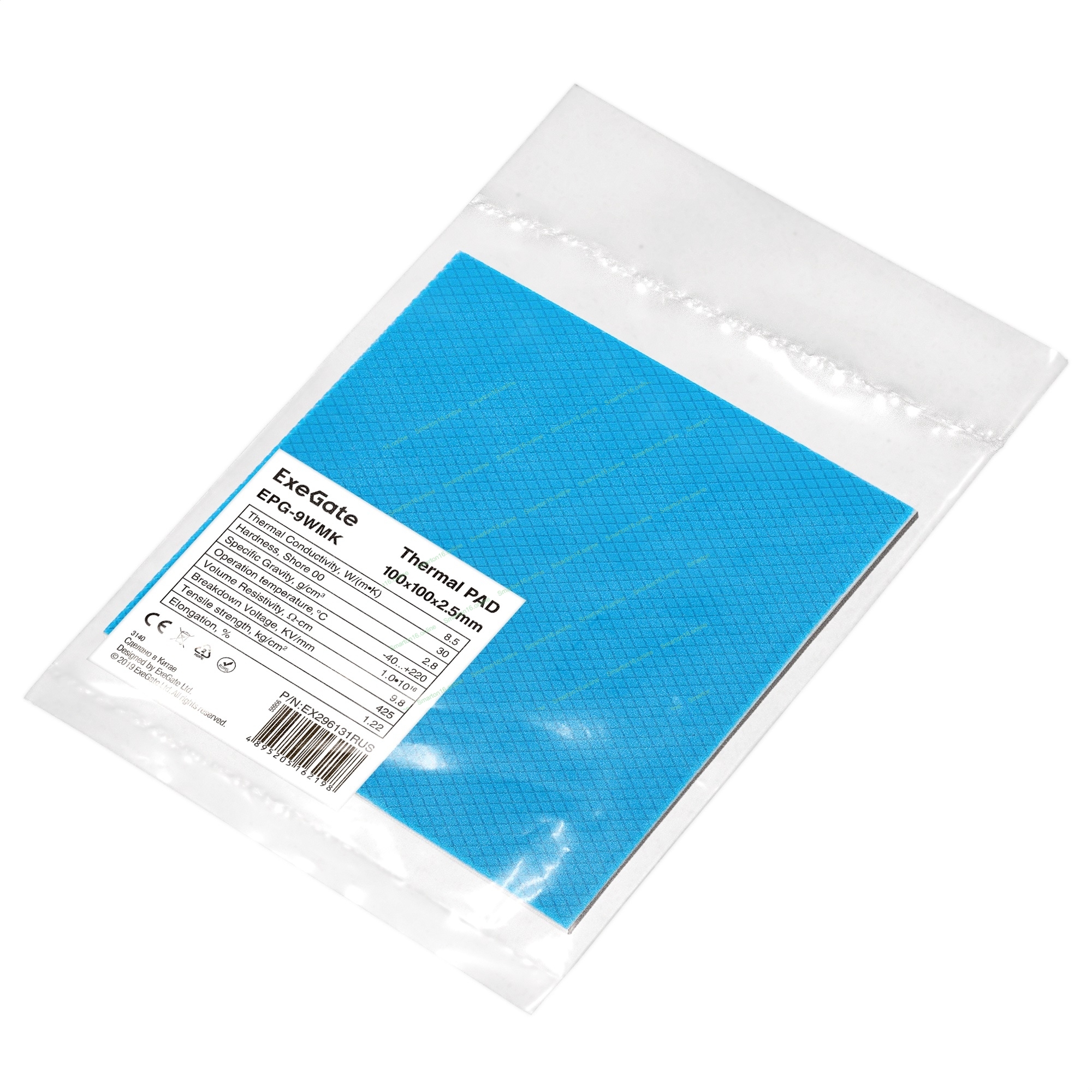 Термопрокладка ExeGate EPG-9WMK (100x100x2.5 мм, 8,5 Вт/(м•К), теплопроводящая клейкая двухсторонняя)