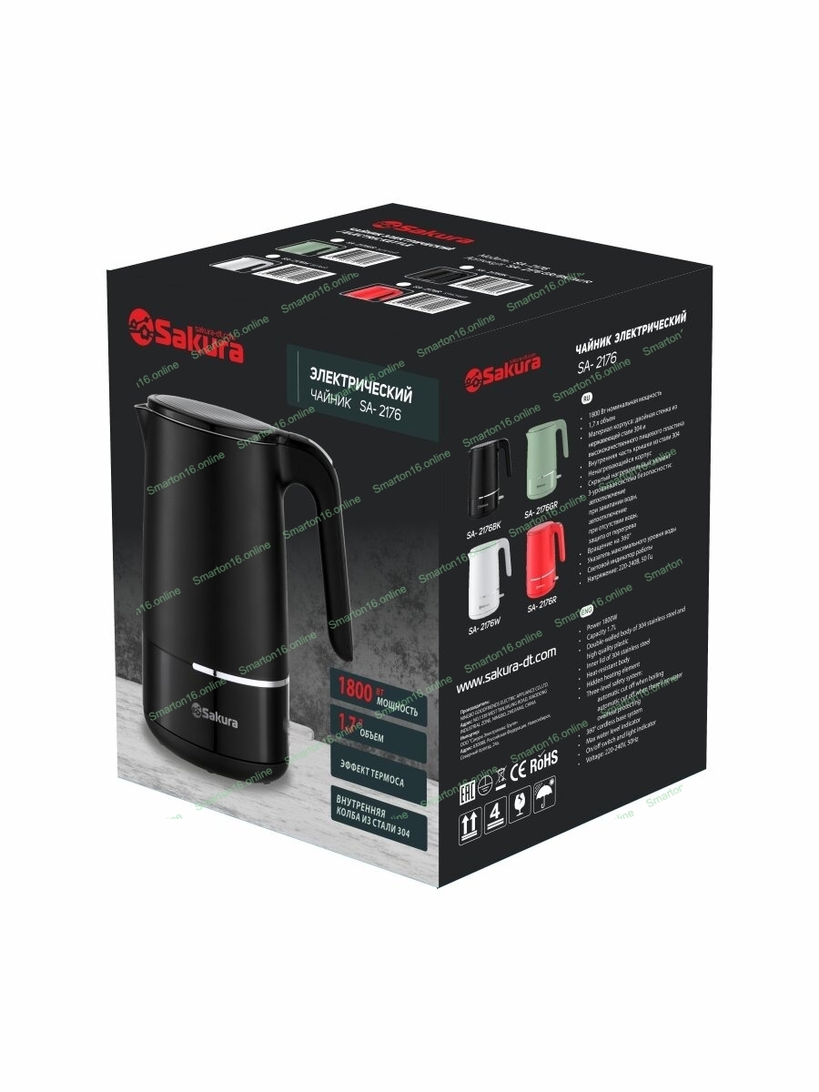 Чайник электрический Sakura SA-2176BK черный, 1.7 л, 1800 Вт