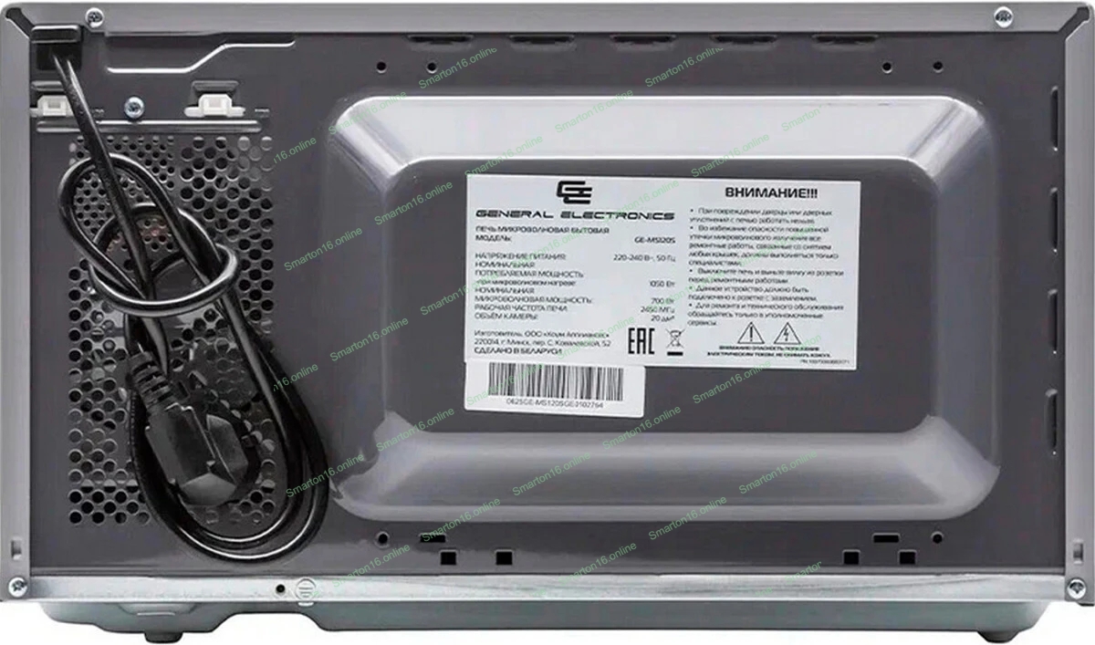 Микроволновая печь General Electronics GE-MS120S серебристый, 20 л, 700 Вт, переключатели - поворотный механизм