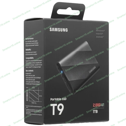 Внешний SSD Samsung T9, 1TB, USB 3.2 Gen 2x2 Type-C, R/W 2000/1950, черный