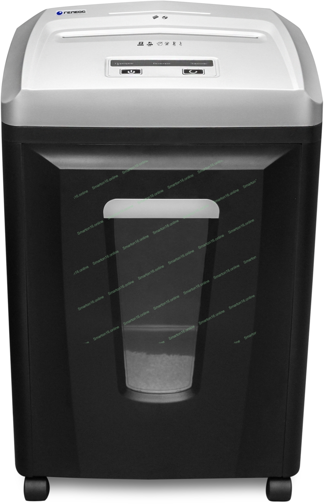 Шредер ГЕЛЕОС УП21-7, DIN P-7 (7 ур-нь секр.), фрагмент 0,8х2мм, 6-7 лист (70г/м2), CD/пл.карты, 23 литра