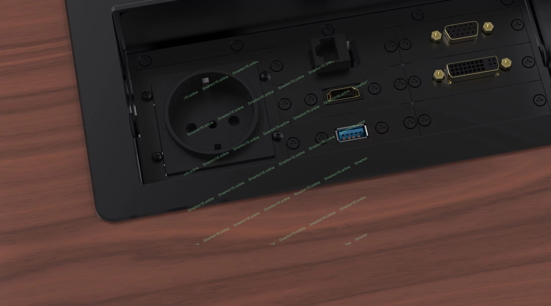Металлический корпус WRTS-11BOX-B Wize для модульной системы врезного лючка в стол с убирающейся крышкой, черный;