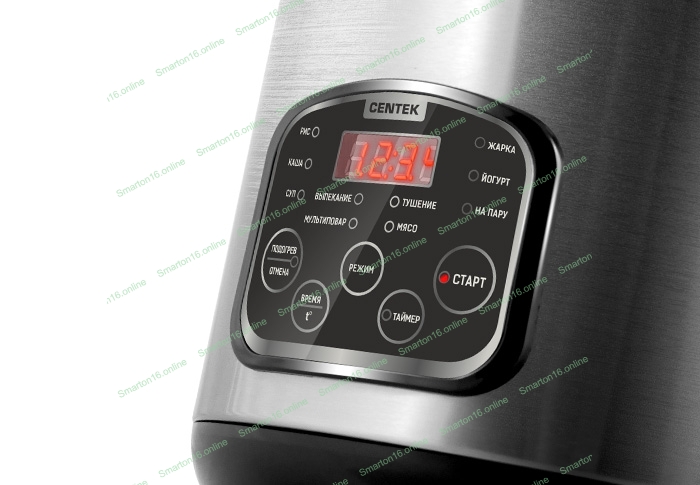 Мультиварка Centek CT-1490 (сталь)скороварка,1000Вт; 5.0л, 8 программ, ненагр крышка, а/п покр(4)