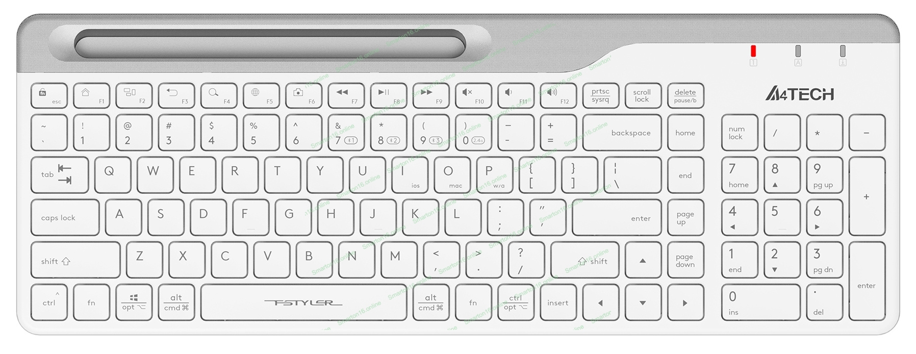 Клавиатура беспроводная A4Tech Fstyler FBK25, USB, Bluetooth/Радиоканал, белый/серый