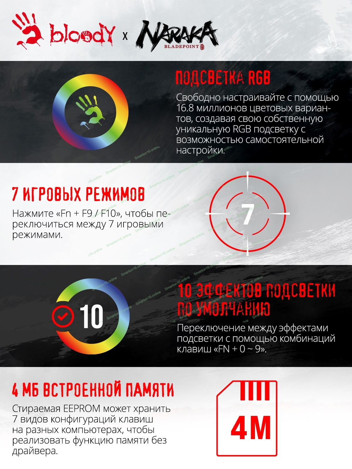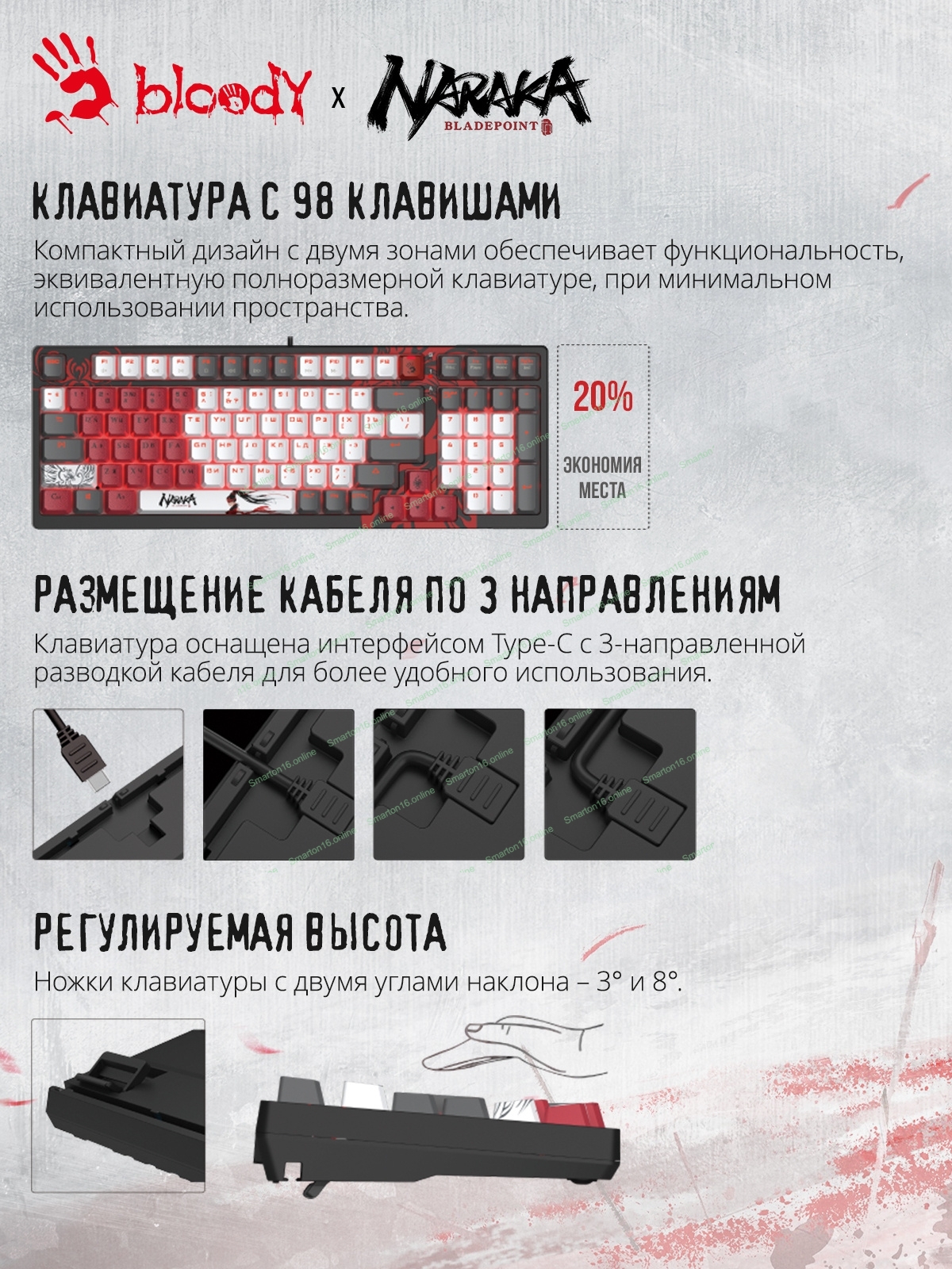 Клавиатура проводная A4Tech Bloody S98 Naraka механическая черный/красный USB for gamer LED (S98 NARAKA)