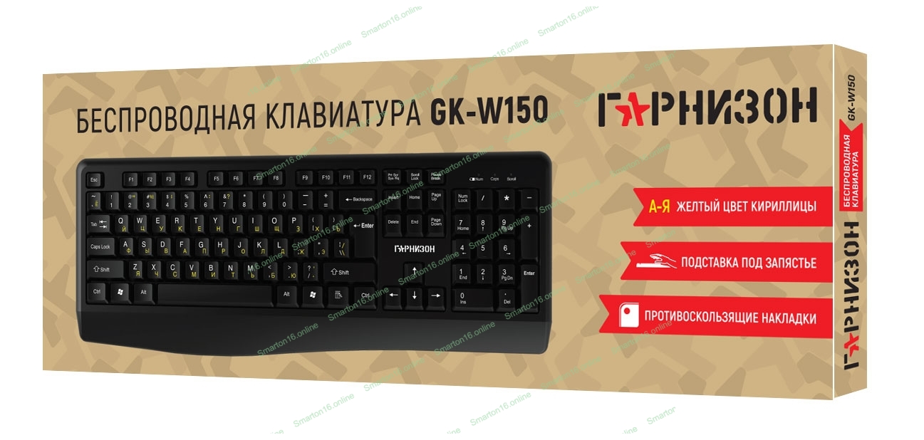 Беспроводная клавиатура Гарнизон GK-W150, 104кл, 2.4 ГГц, черная