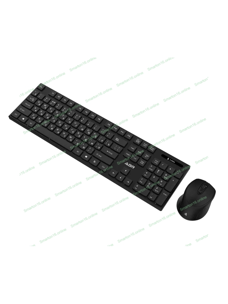 Комплект клавиатура и мышь ABR KW814 черный, интерфейс USB, беспроводной, 2.4G, RU/EN