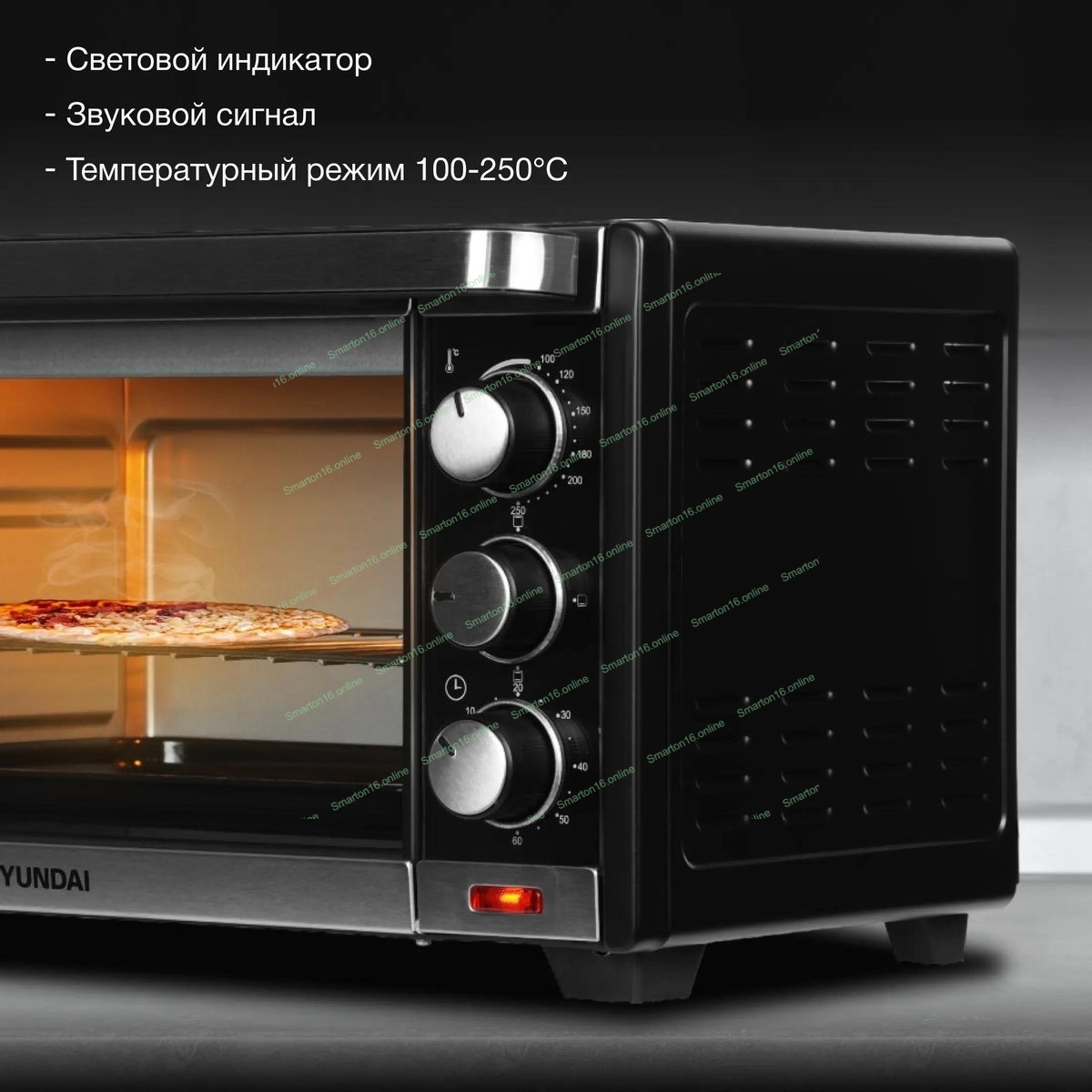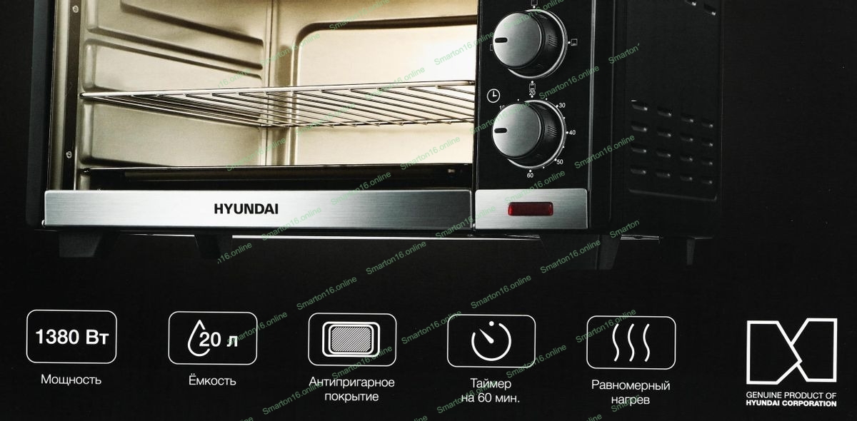 Мини-печь Hyundai MIO-HY091 20 л, 1380 Вт, черный