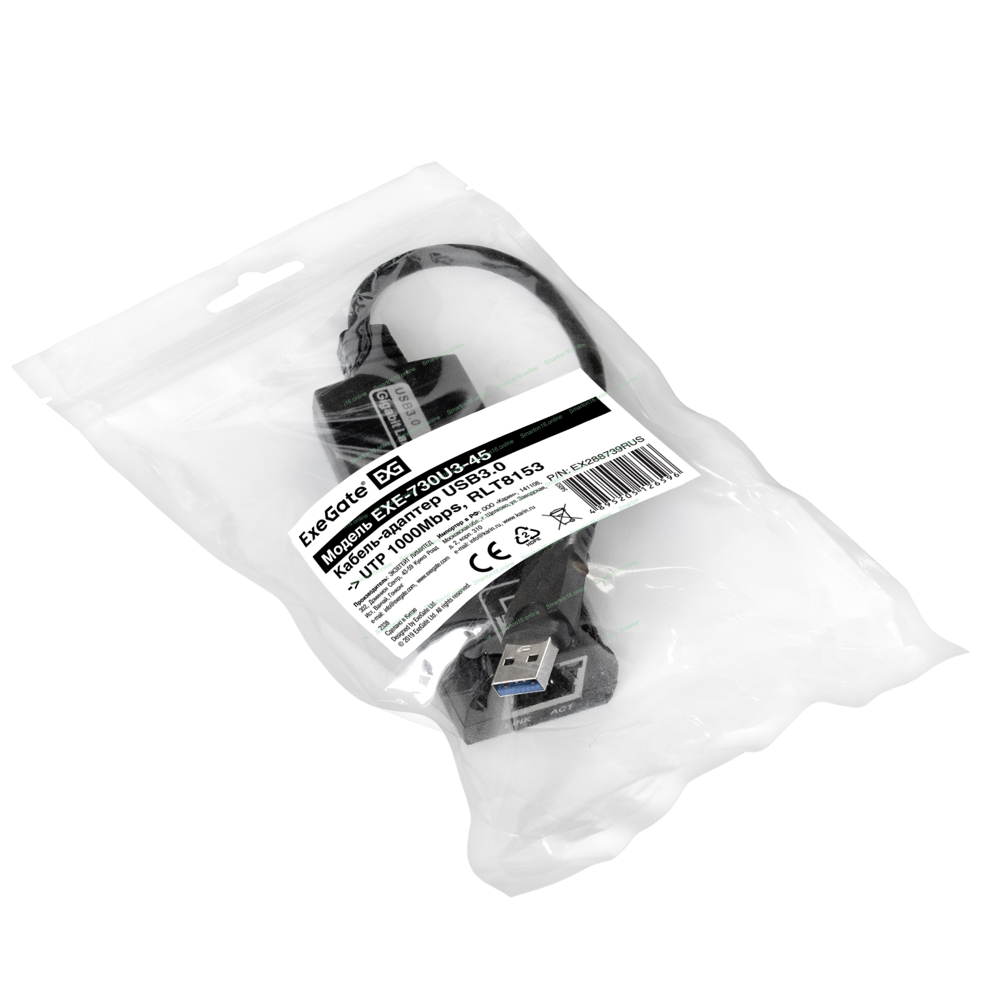 Кабель-адаптер ExeGate EXE-730U3-45 (USB3.0 --> UTP 1000Mbps, RLT8153)