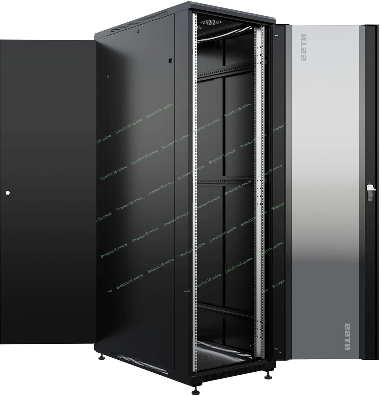 Шкаф серверный NTSS Премиум (NTSS-R42U80100GS-BL) напольный 42U 800x1000мм пер.дв.стекл металл 900кг черный 910мм 160кг 1987мм IP20 сталь