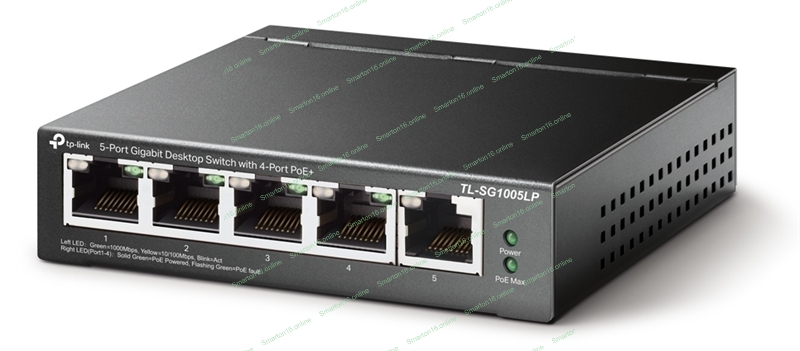 Коммутатор TP-Link 5-Port Gigabit Unmanaged Switch with 4-Port PoE+, metal case, desktop mount, PoE budget 40W.