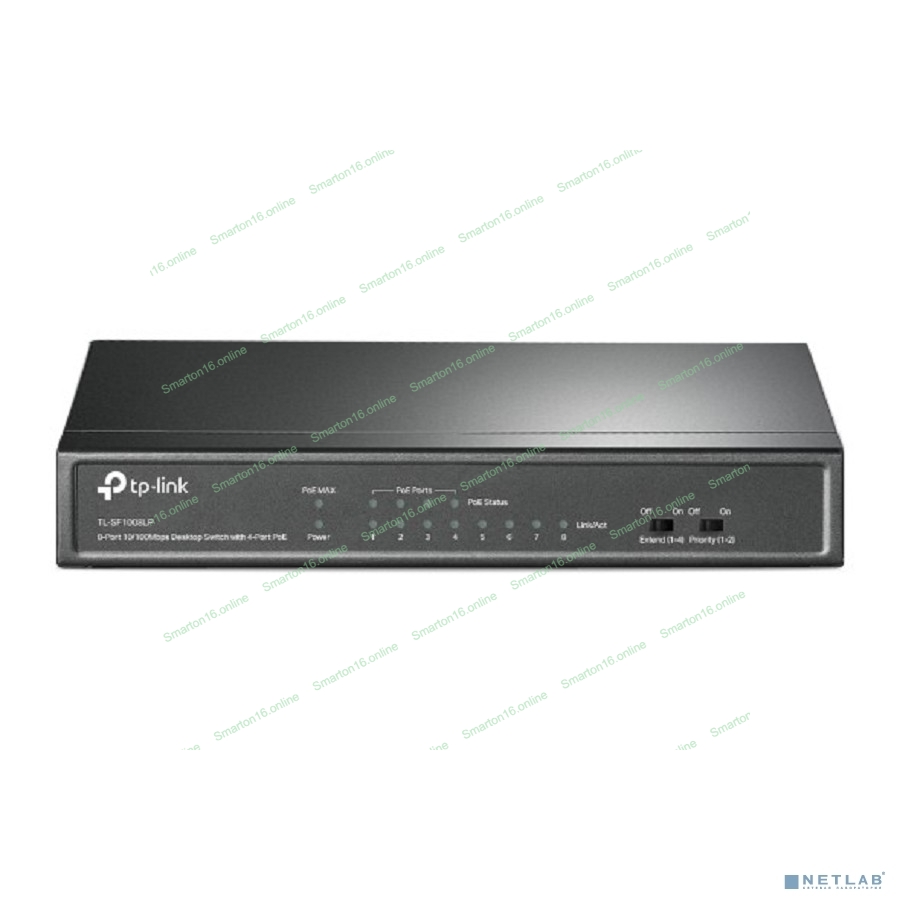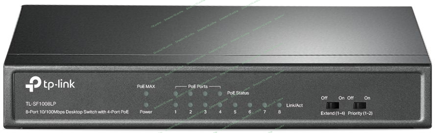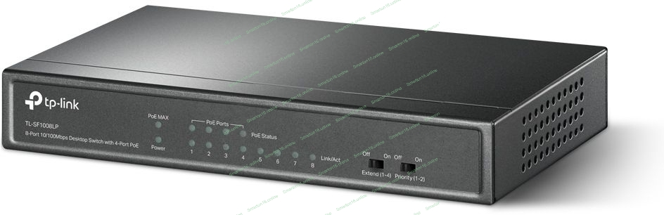 Коммутатор TP-Link 8-Port 10/100Mbps Unmanaged Switch with 4-Port PoE, metal case, desktop mount, PoE budget 41W.