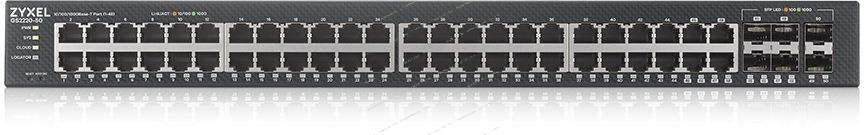 Коммутатор гибридный L2 Zyxel NebulaFlex Pro GS2210-50, rack 19", 44xGE, 4 комбо-порта (SFP/RJ-45), 2xSFP, автономное/облачное управление