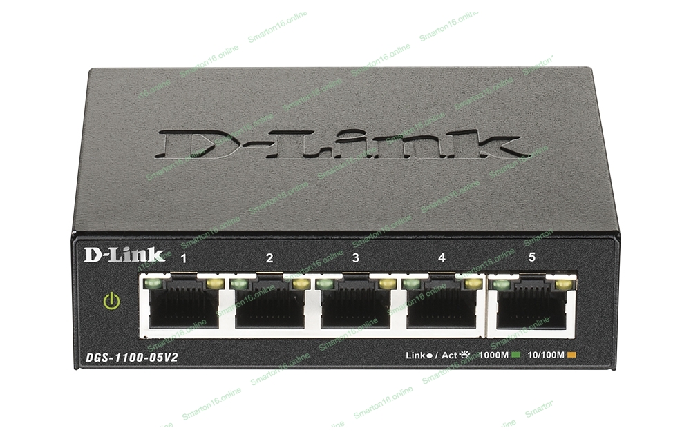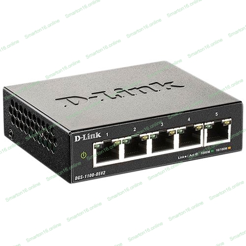 Коммутатор D-Link DGS-1100-05V2/A1A, L2 Smart Switch with 5 10/100/1000Base-T ports.8K Mac address, 802.3x Flow Control, Port Trunking, Port Mirroring, IGMP Snooping, 32 of 802.1Q VLAN, VID range 1-4094, Loopba