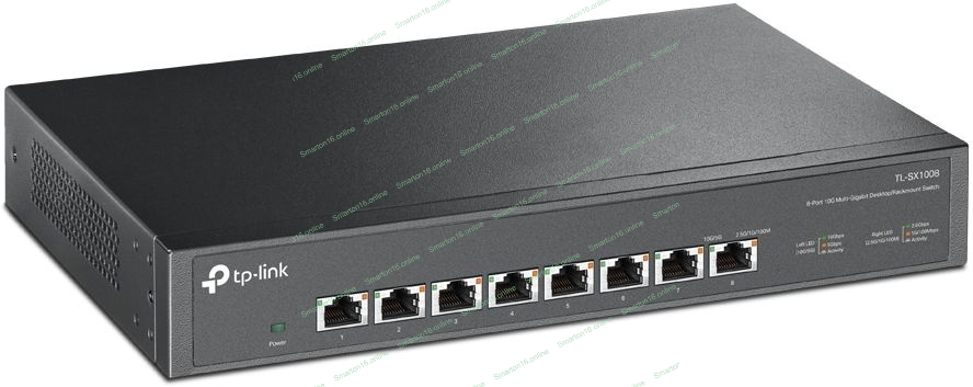 Коммутато TP-Link 8-port Desktop/Rackmount 10G Unmanaged Switch, 8 100/1G/2.5G/5G/10G RJ-45 ports, 1 Fan with intelligent speed control, 100-240 VAC, 50/60 Hz.