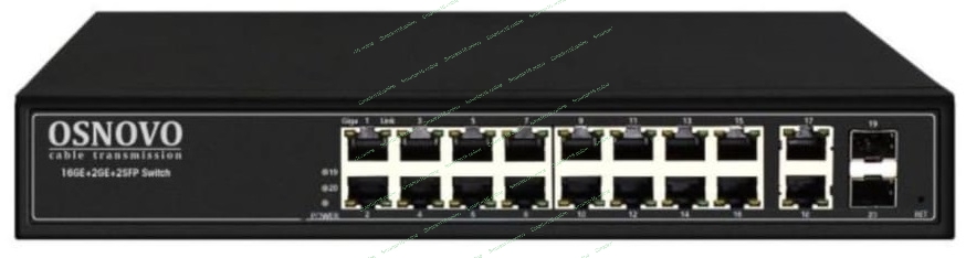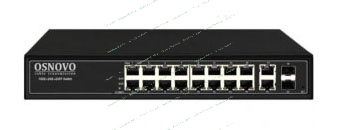 Коммутатор управляемый L2 PoE OSNOVO SW-8182/L(300W) Gigabit Ethernet на 16 RJ45 PoE + 2 x RJ45 + 2 GE SFP портов, до 30W на порт, суммарно до 300W