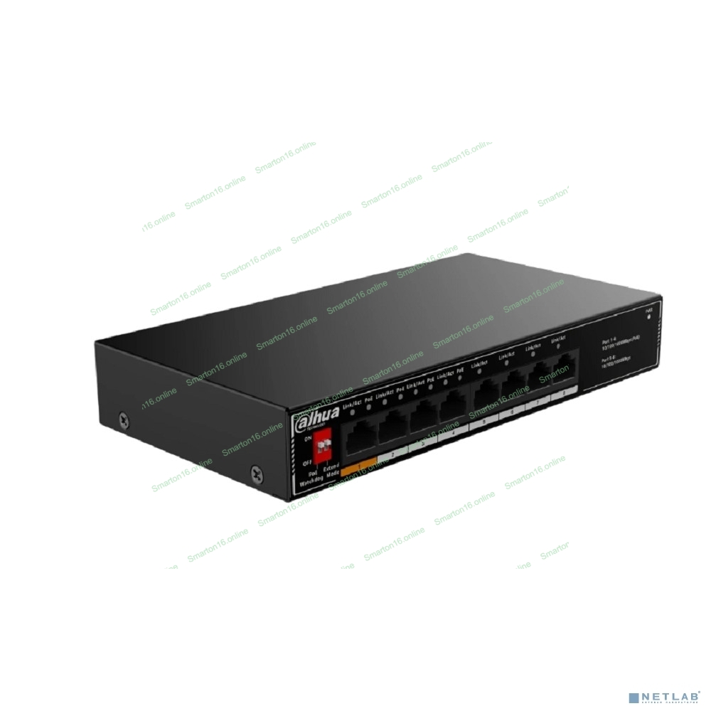 Коммутатор гигабитный 8-портовый неуправляемый c PoE Dahua DH-SG1008LP, 4xRJ45 1Gb PoE, 4xRJ45 1Gb, суммарно 60Вт, коммутация 20 Гбит/с, MAC-таблица 8K, металл