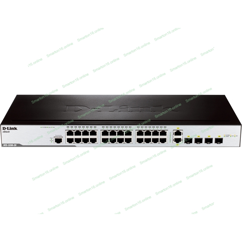Коммутатор управляемый 2 уровня D-Link DES-3200-28/C1A с 24 портами 10/100BASE-T + 2 комбо-портами 1000Base-T/SFP