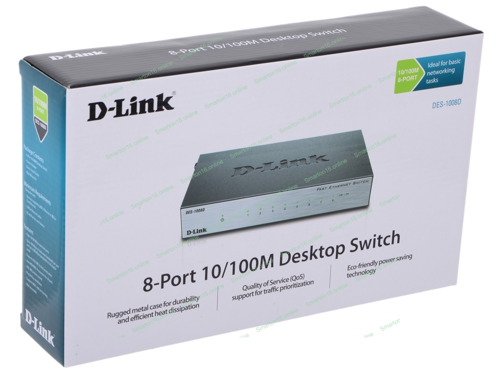 Коммутатор неуправляемый с 8 портами 10/100Base-TX D-Link DES-1008D/(K2A/K3A)RU/J1A/J2A/L2A/L2B
