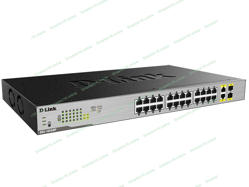 Коммутатор неуправляемый D-Link DGS-1026MP/A1A с 24 портами 10/100/1000Base-T, 2 комбо-портами 100/1000Base-T/SFP и функцией энергосбережения (24 порта с поддержкой PoE 802.3af/at (30 Вт))