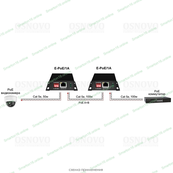 PoE удлинитель Osnovo E-PoE/1A 10M/100M Fast Ethernet на 400м (до 30W)