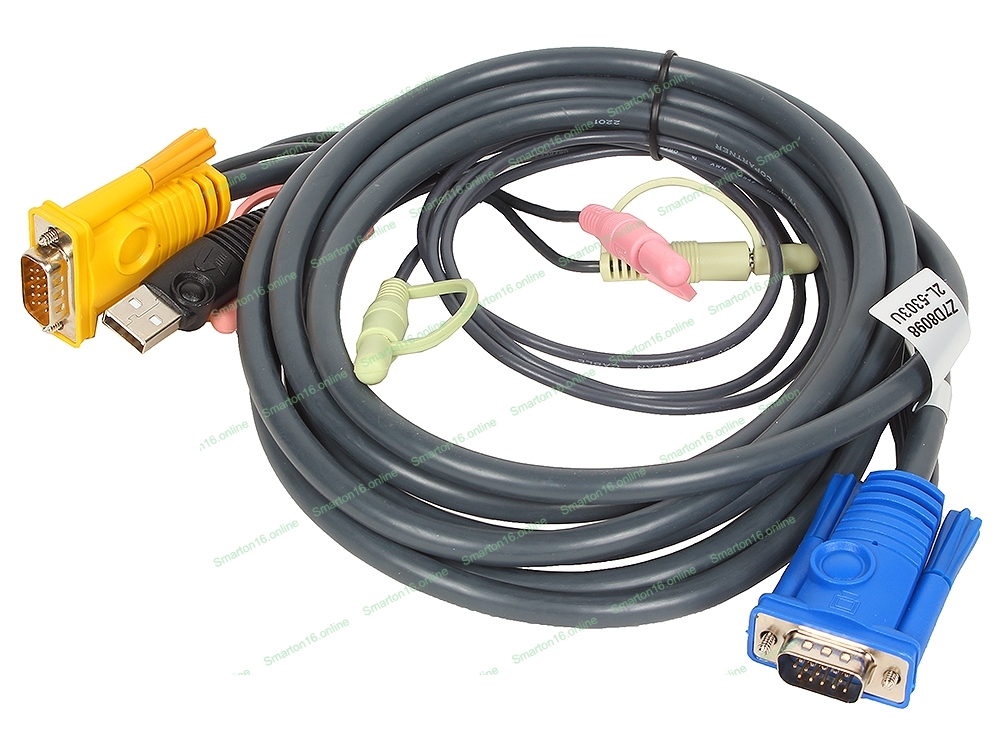 Кабель ATEN KVM Cable 2L-5303U Кабель для KVM: USB(Am)+DB15(m)+2*Audio (PC) -на- SPHD15(m)+2*Audio (KVM), 3м