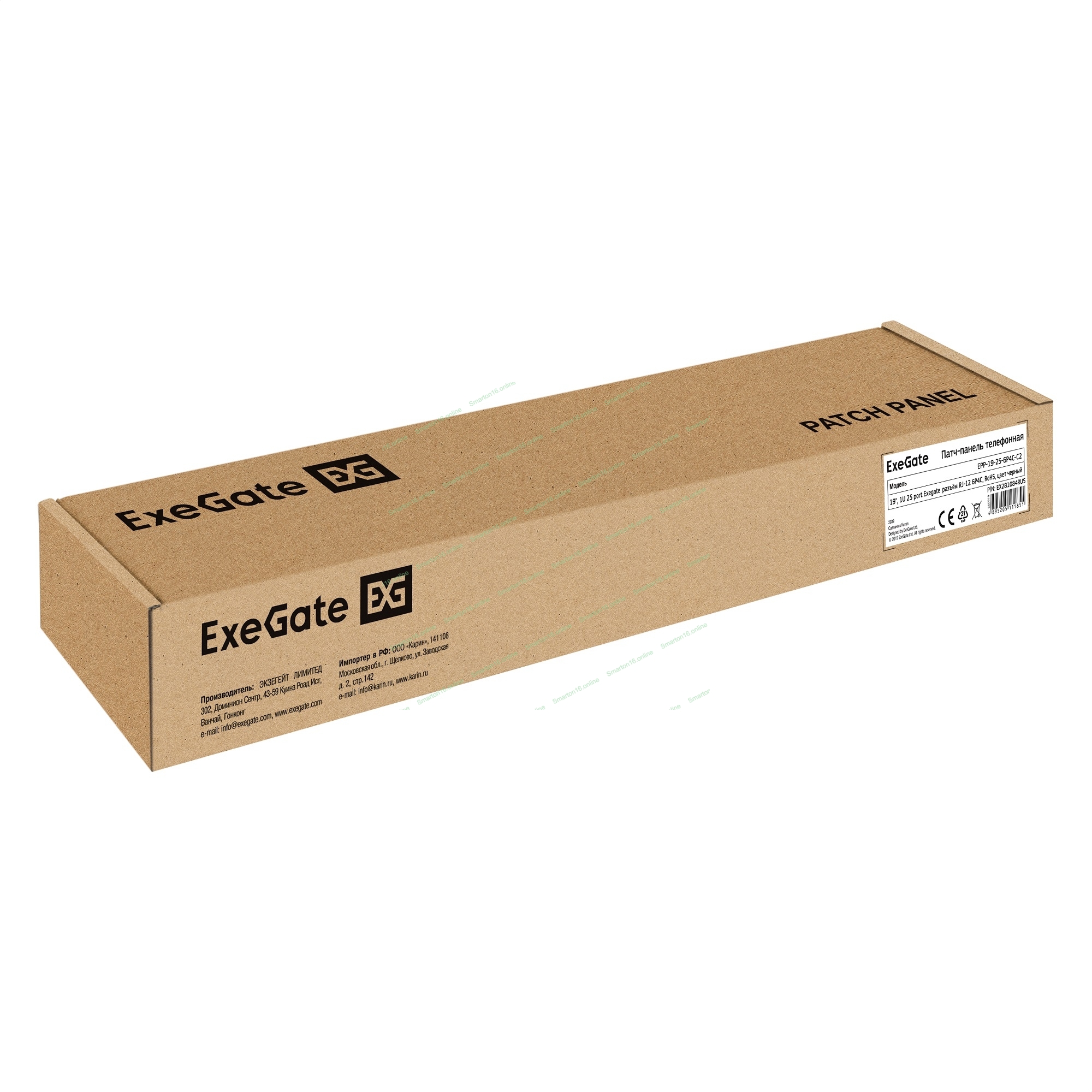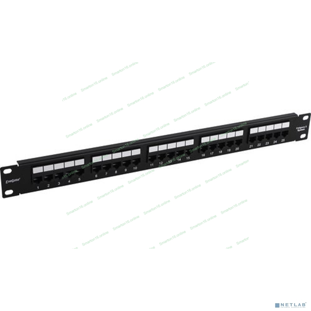 Патч-панель телефонная 19", 1U 25 port ExeGate разъем RJ-12 6P4C, RoHS, черный