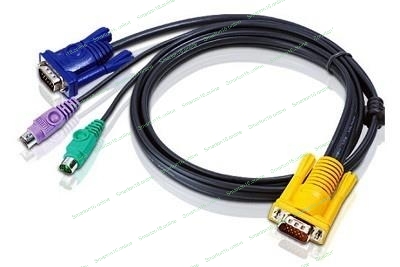 Шнур, мон+клав+мышь PS/2, SPHD15=>HD DB15+2x6MINI-DIN ATEN (2L-5202P) Male-3xMale, 8+6+6 проводов, опрессованный, 1.8 метр., черный
