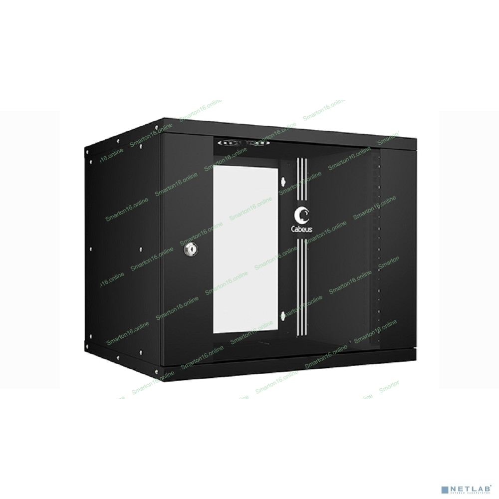 Шкаф телекоммуникационный настенный Cabeus Light, 19", 9U, 450х550х450 мм (ВхШхГ), дверь: стекло, разборный, чёрный
