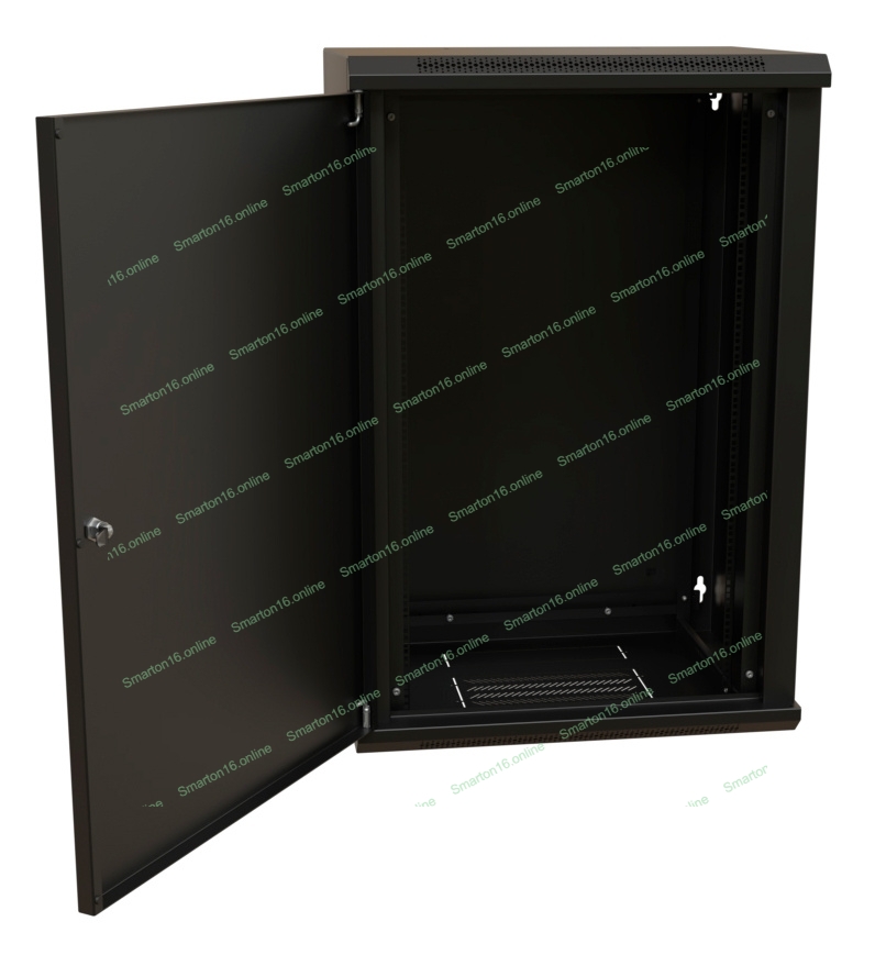 Шкаф коммутационный WRline (WR-TW-2245-SR-RAL9004) настенный 22U 600x450 мм пер. дв. металл 2 бок. пан. 60 кг черный 370 мм 1086 мм IP20 сталь