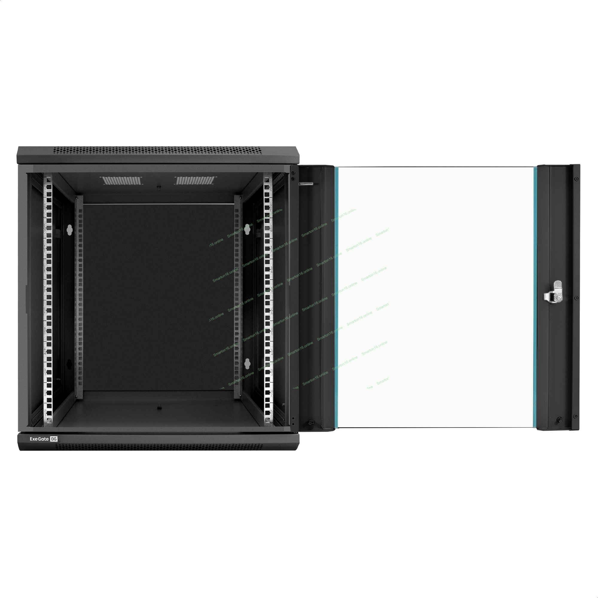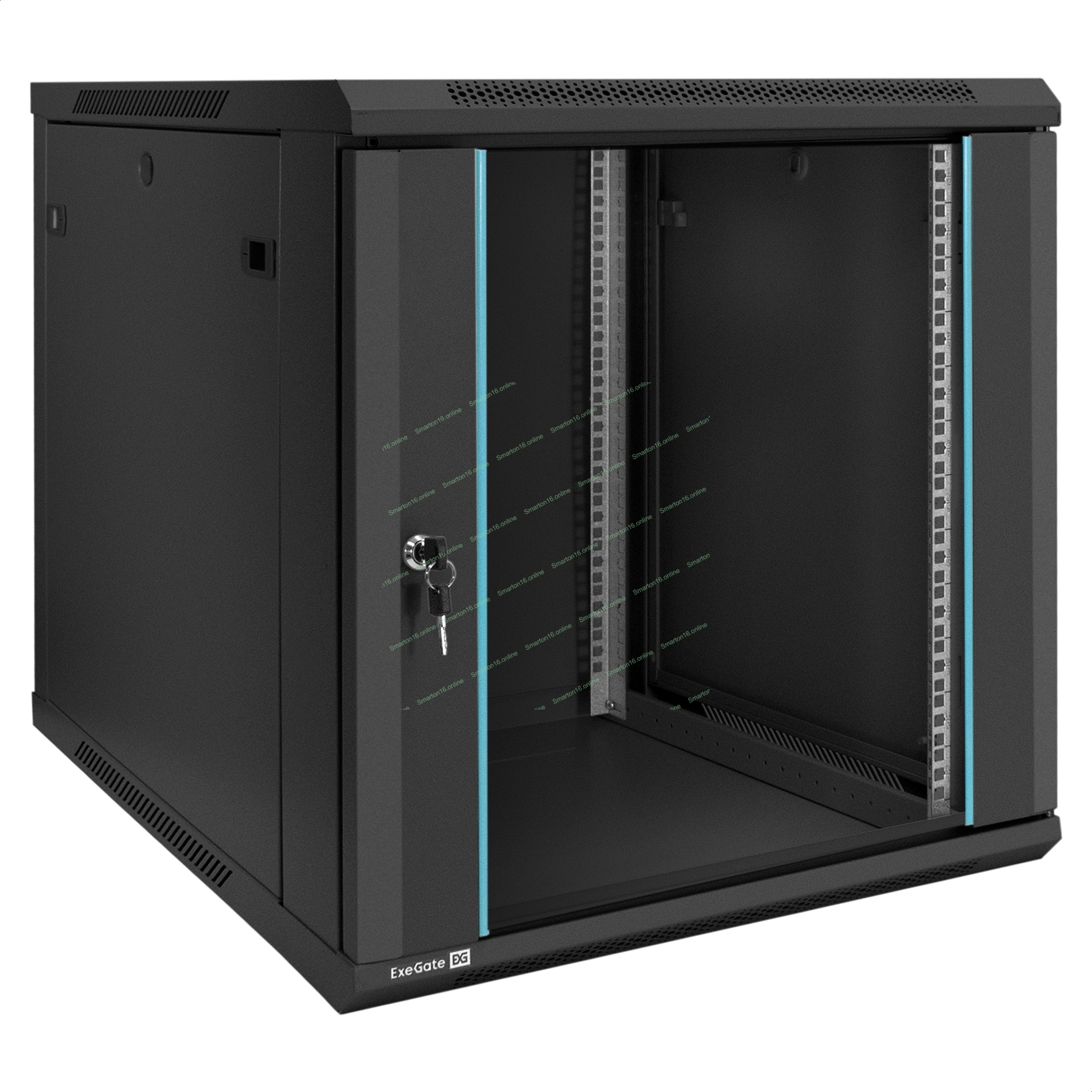 Шкаф телекоммуникационный 19" настенный 12U ExeGate EC-WM-12U.600.G.BLACK (19", 12U, 600x600x635 мм (ШхГхВ), передняя дверь закаленное стекло, съемные боковые панели, пыле- и влагозащита IP23, черный RAL 9004)