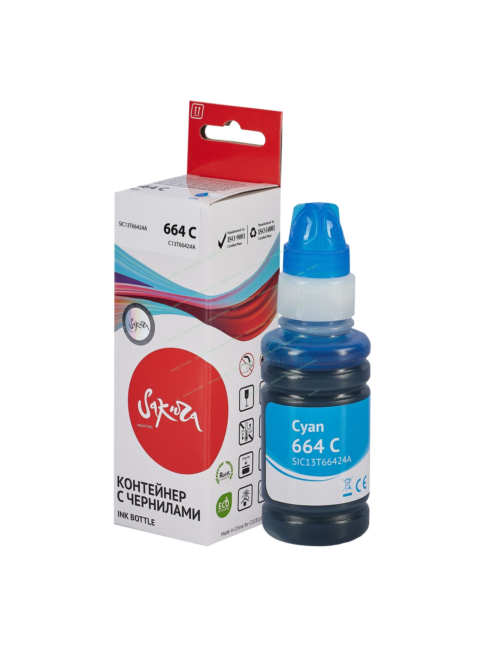 Контейнер с чернилами Sakura C13T66424A (664 C) для Epson, голубой, 6500 к., 70 мл.