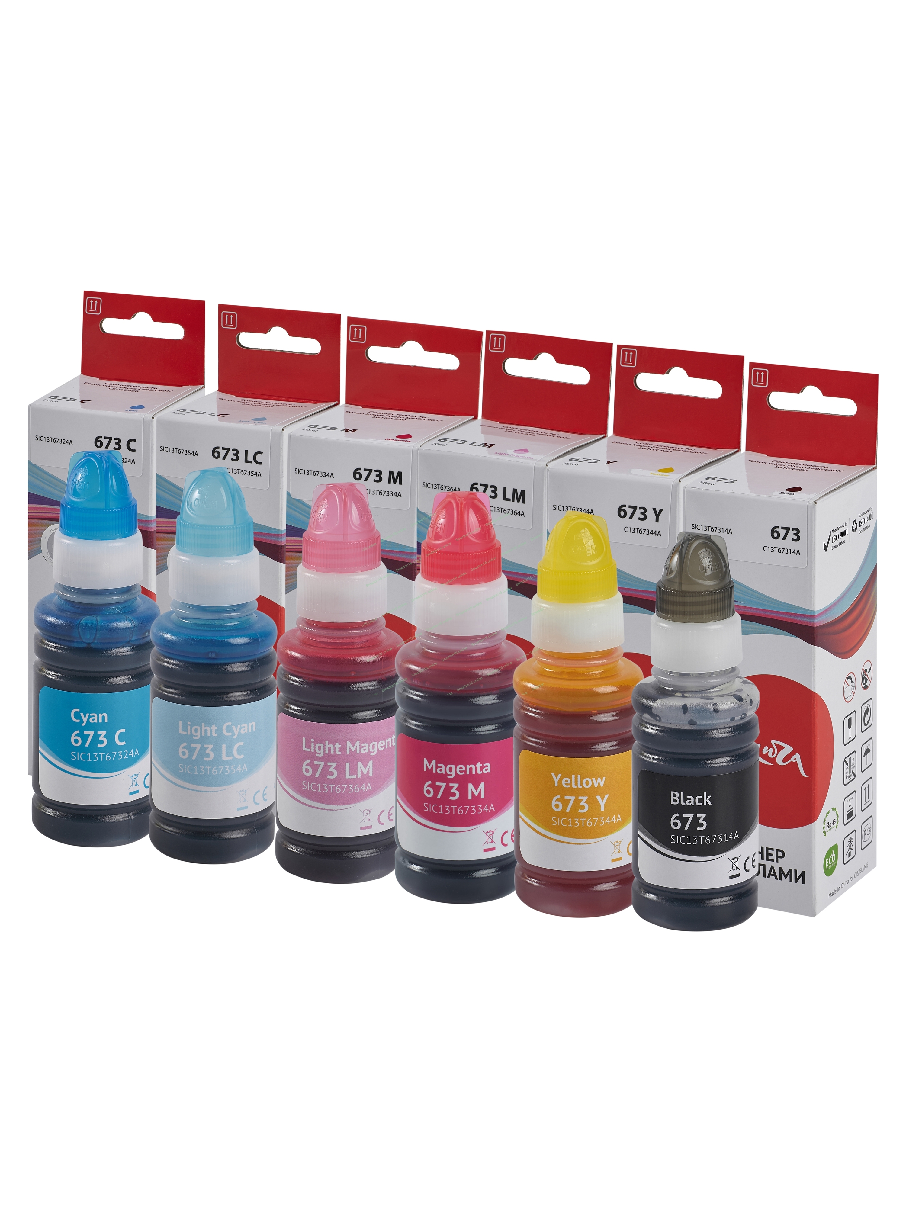 Контейнеры с чернилами Sakura SIC13T673BA (673-6 цветов) для Epson, черный,голубой, пурпурный, желтый, светло-голубой, светло-пурпурный), 70 мл*5