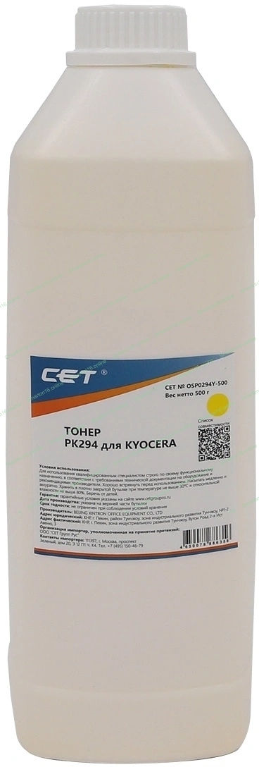 Тонер CET для Kyocera ECOSYS M5521cdn/M6630cidn Yellow (PK294) 500г/бут. (TK-5220Y/TK-5230Y/TK-5240Y/TK-5270Y) Japan
