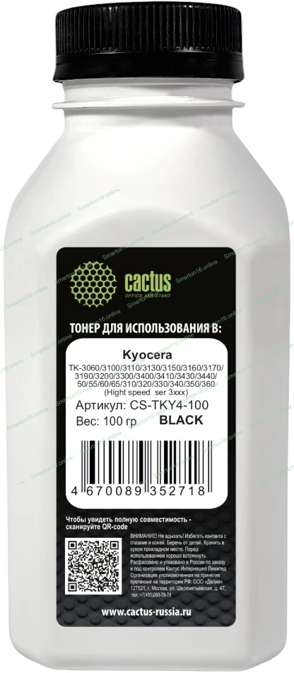 Тонер Cactus CS-TKY4-100 черный флакон 100гр. для принтера Kyocera TK-3060/3100/3110/3130/3150/3160/3170/3190/3200/3300/3400/3410/3430/3440/50/55/60/65/310/320/330/340/350/360 (Hight speed ser 3xxx)