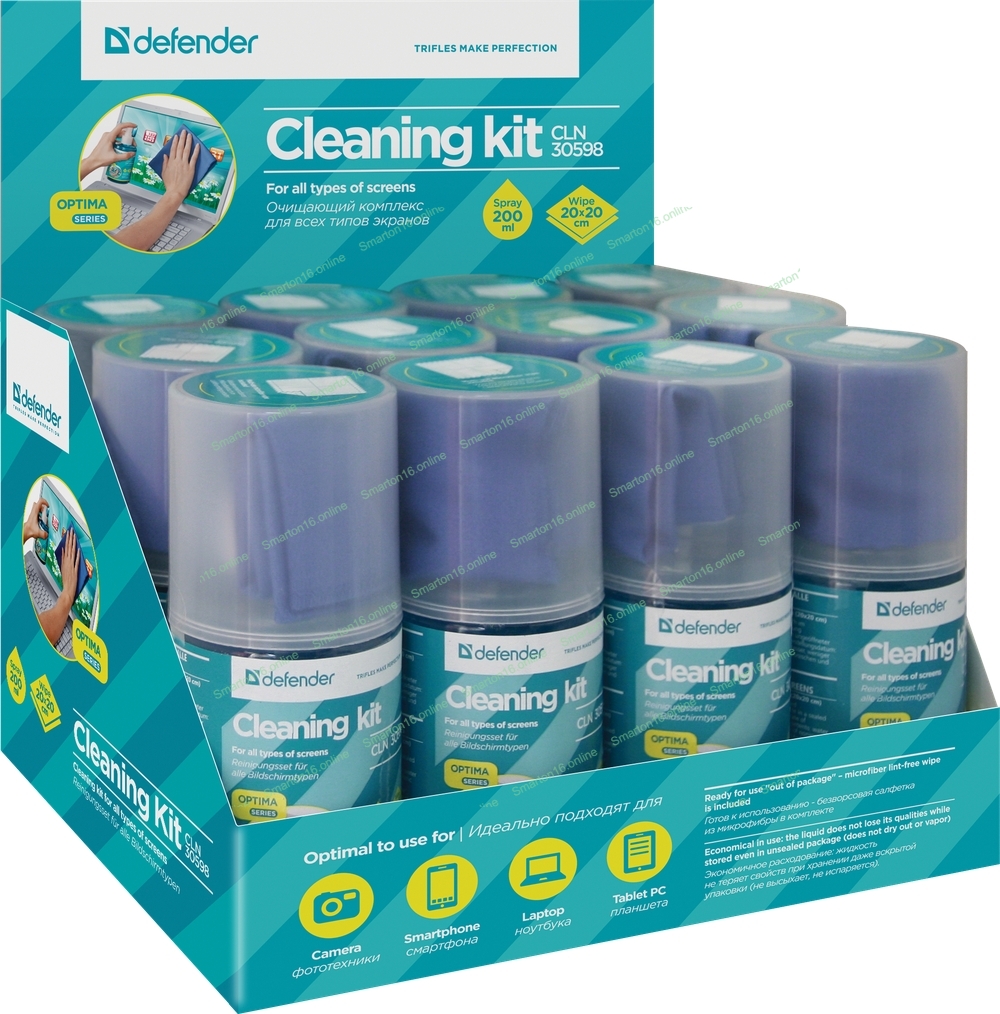 Чистящий спрей Defender для экранов/пластиковый флакон с пульверизатором 200 мл + микрофибра 20 х 20 см/Беларусь