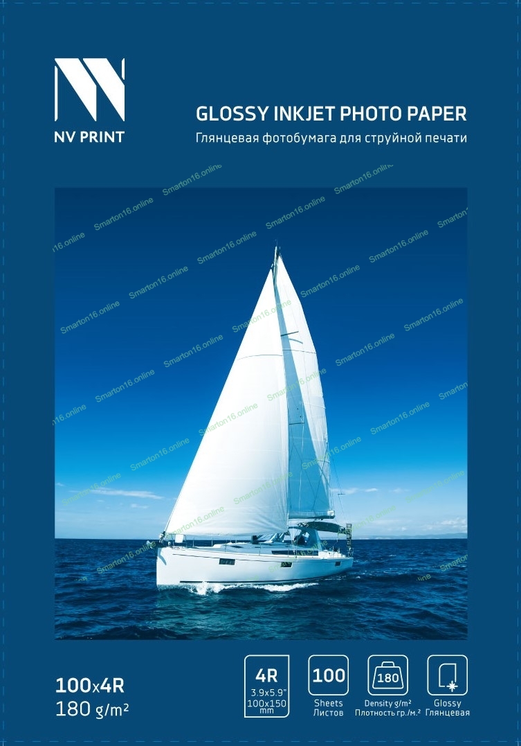 Глянцевая фотобумага NVPrint для струйной печати 180 г/м 4R(100ммx150мм) 100 листов