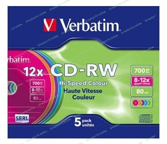 Диск CD-RW Verbatim 700Mb 12x Slim case (5шт) Color (43167)