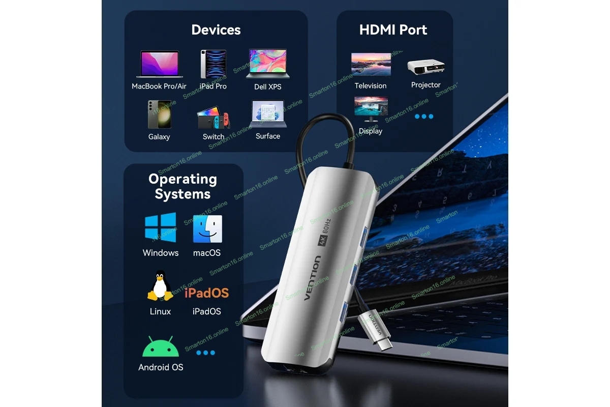 Мультифункциональный хаб Vention USB Type C 8 в 1