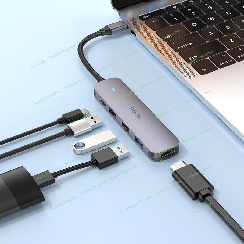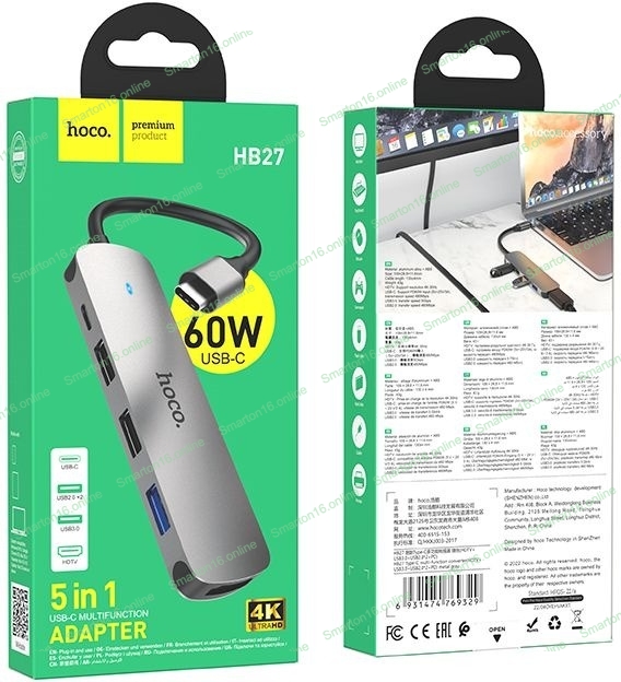 Разветвитель USB-C Hoco HB27 4порт. серый