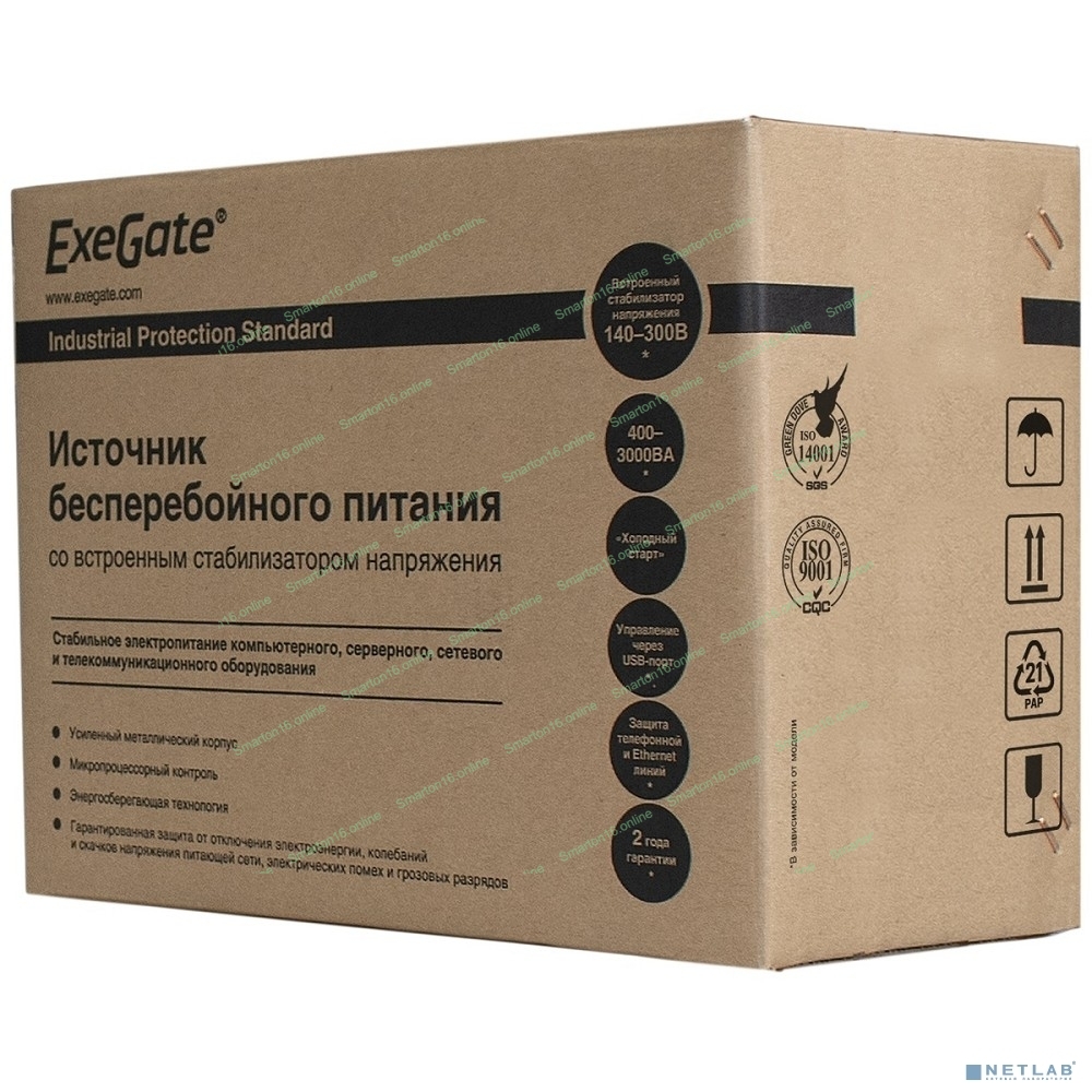 Источник бесперебойного питания ExeGate EP285515RUS SpecialPro UNB-2000.LED.AVR.EURO.RJ.USB 2000VA/1200W, LED, AVR, 4 евророзетки, RJ45/11, USB, Black