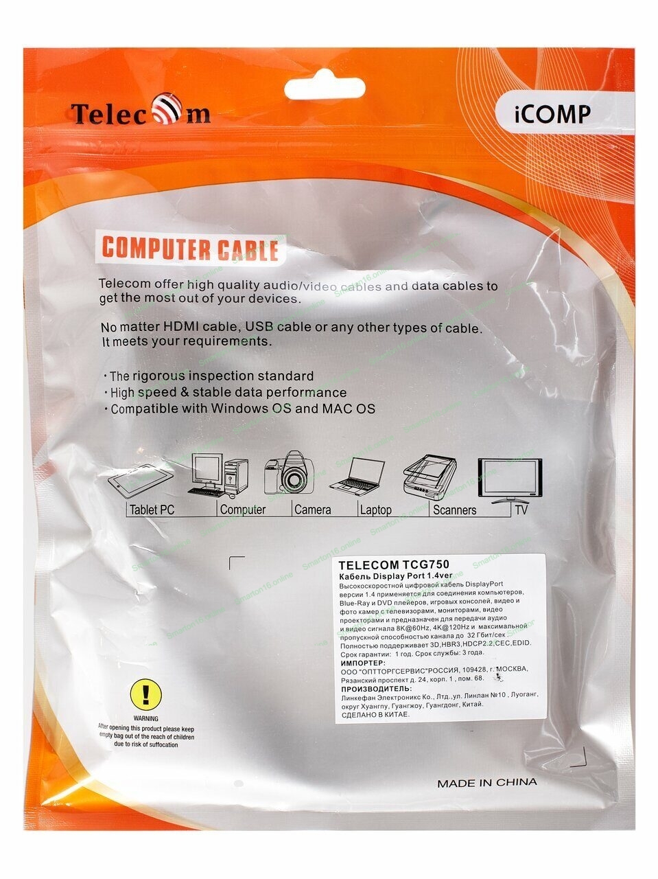 Высокоскоростной цифровой кабель DisplayPort версии 1.4 применяется для соединения компьютеров, Blue-Ray и DVD плейеров, игровых консолей, видео и фото камер с телевизорами, мониторами, видео проекторами и предназначен для передачи аудио и видео сигнала Full HD с разрешением 19201080, Ultra HD 4K с разрешением 38402160, Full 4K с разрешением 40962160, 5K с разрешением 5120х2880, 8К с разрешением 7680х4320 пикселей и максимальной пропускной способностью канала до 32 Гбит/сек . Максимальное разрешение видео сигнала 8K@60Hz, 4K@140Hz... Полностью поддерживает 3D, HBR3, HDCP2.2 , CEC, EDID.