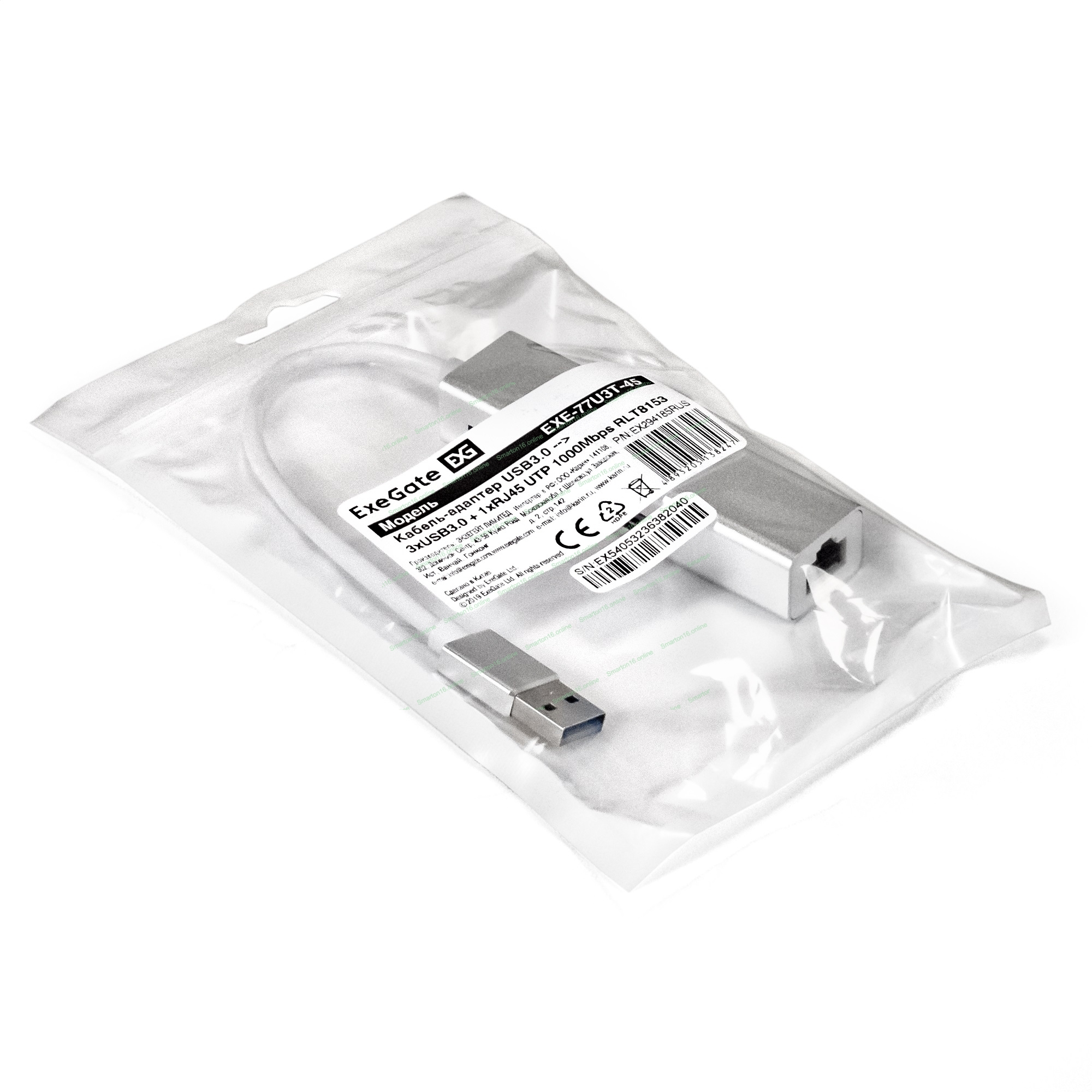 Кабель-адаптер ExeGate EXE-77U3T-45 (USB3.0 --> 3xUSB3.0 + 1xRJ45 UTP 1000Mbps RLT8153)