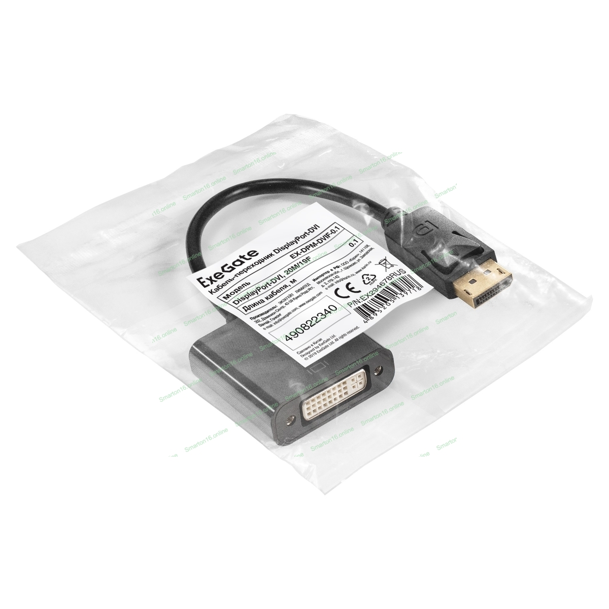 Кабель-переходник DisplayPort-DVI ExeGate EX-DPM-DVIF-0.1 (20M/19F, 0,1м)