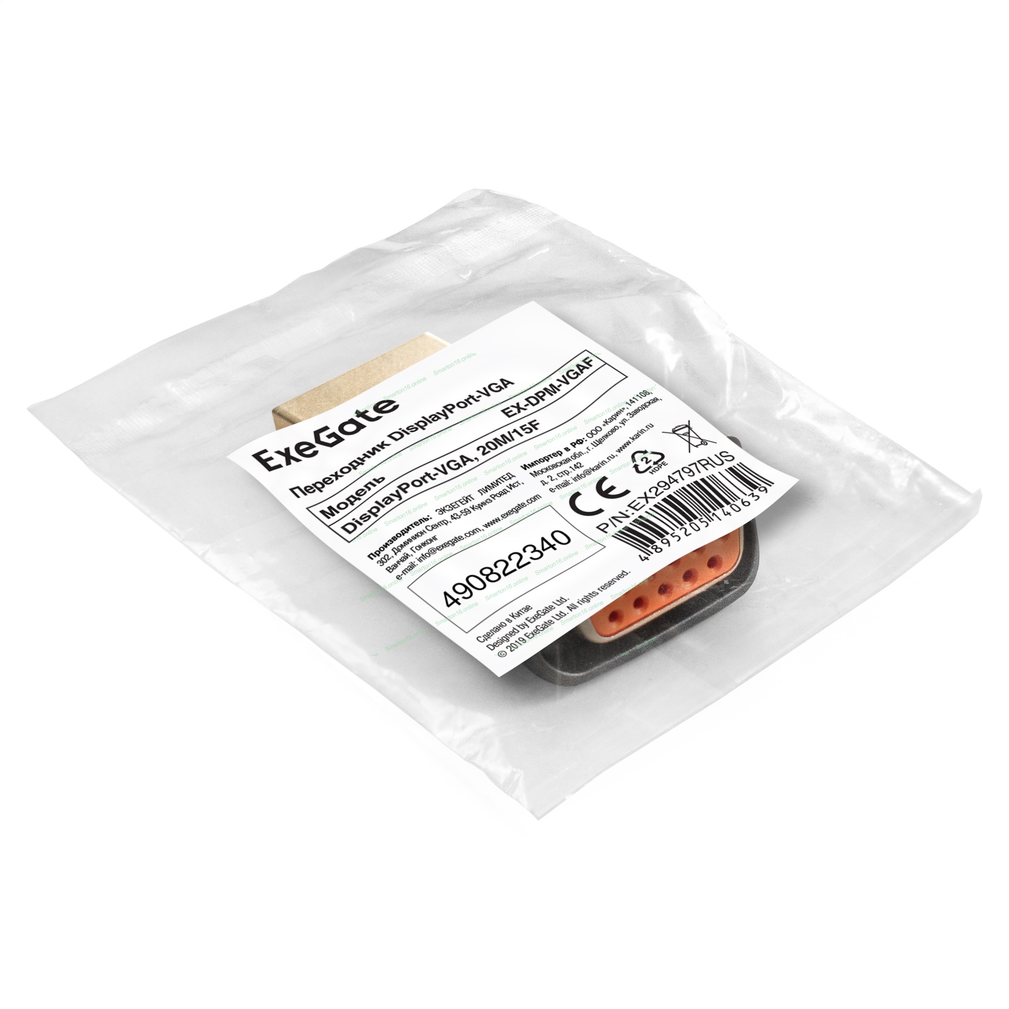 Переходник DisplayPort-VGA ExeGate EX-DPM-VGAF (20M/15F)