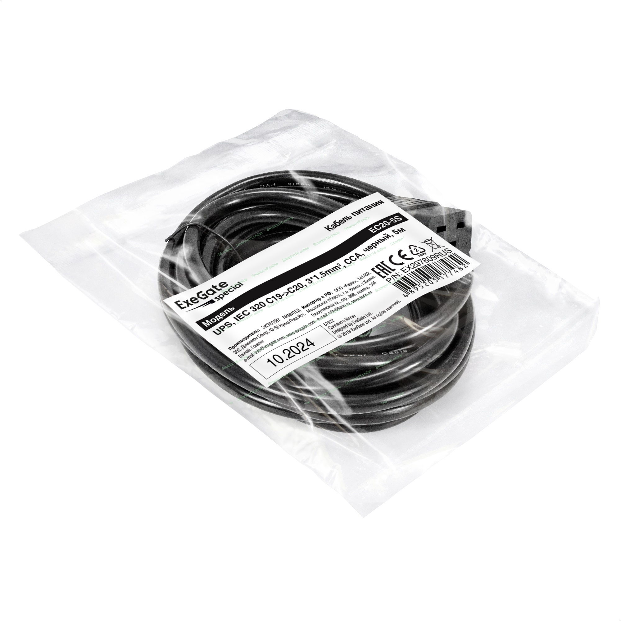 Кабель питания (UPS) ExeGate Special EC20-5S (IEC 320 C19->C20, 3*1.5мм2, CCA, черный, 5м)