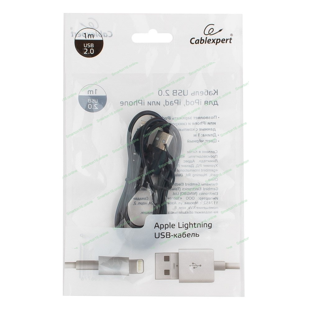 Кабель USB Cablexpert CC-USB-AP2MBP AM/Apple, для iPhone5/6 Lightning, 1м, черный, пакет