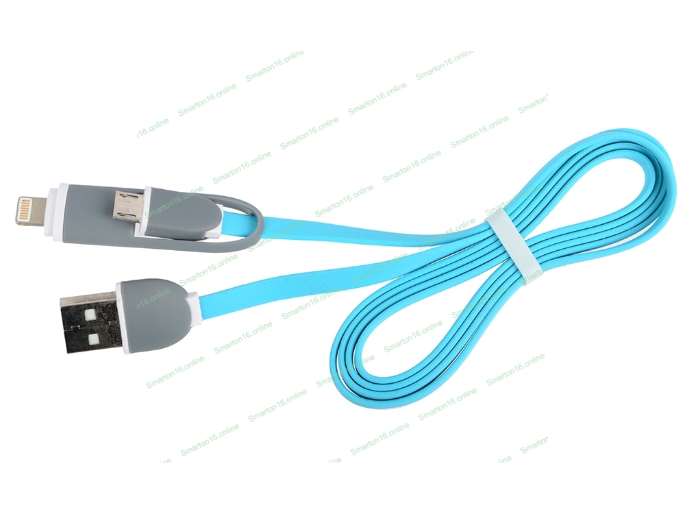 Кабель 2в1 MicroUSB+Lightning 8pin-USB Ritmix RCC-200 Blue для синхронизации/зарядки, 1м