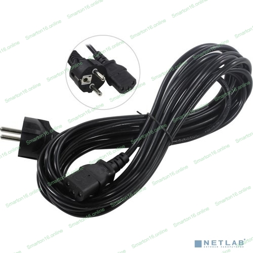 Кабель питания ExeGate Power PC-5P (Евровилка Schuko->С13) VDE-250V-3*0.5-CU, 6A, черный, 5м